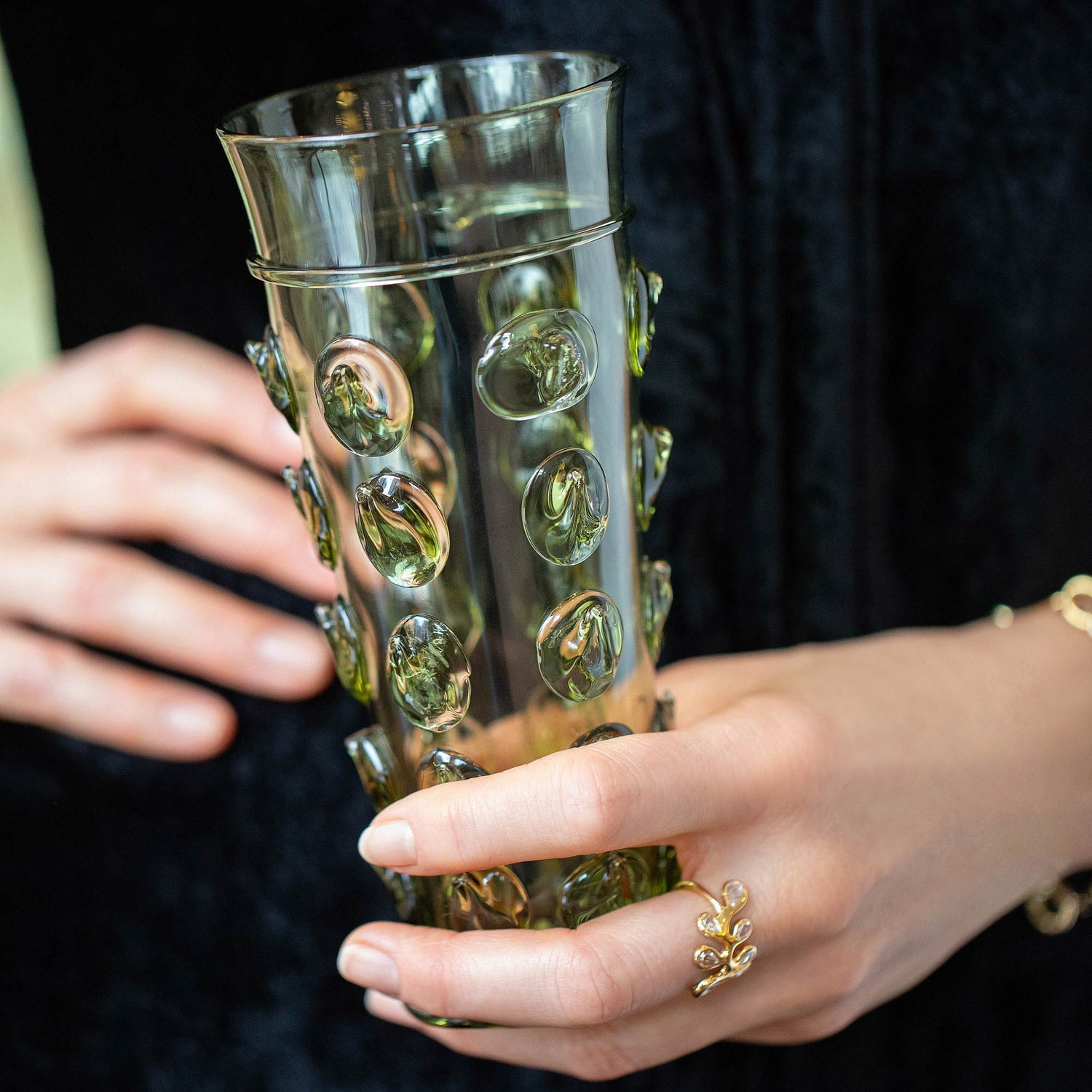 Each mouth-blown Bollenglass piece is handmade by master craftspeople in line with Czech traditions. Their designs contain intricate details that reference historical styles of glass.