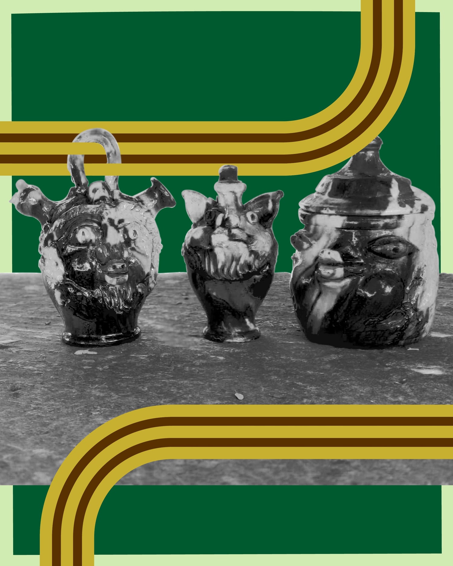 A group art exhibition featuring traditional ceramics sourced from the Calabrian region of Italy and expressive sculptures made by friends of Mociun. The word ‘apotropaia’ describes rituals and objects that imbue a space with protection against evil energies.