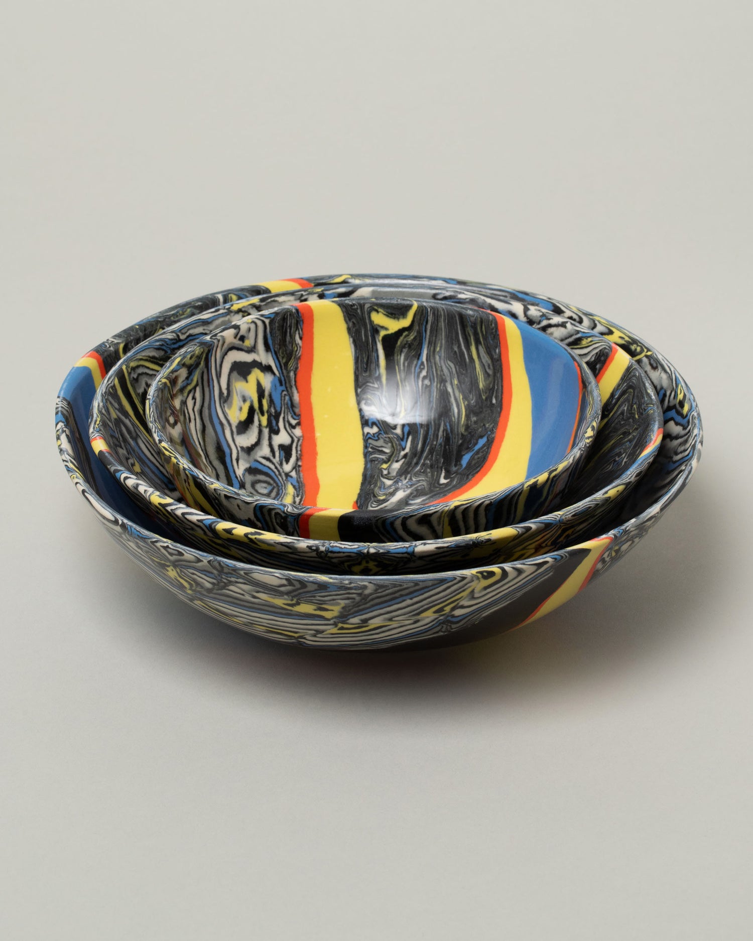 Morgan Levine is a Brooklyn-based ceramicist making functional pottery using tinted stoneware slips. The results reference 17th century Staffordshire slipware, Turkish Ebru patterns, Venetian marbled papers and French agateware. Morgan fires each piece with a buttery satin glaze, to permanently preserve both her gesture and the slip’s fleeting fluidity.